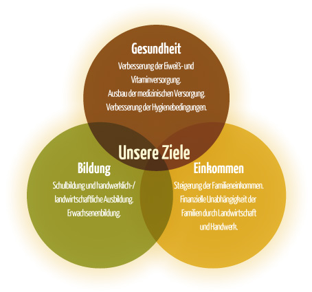 Ziele sind die Verbesserung der Gesundheit, die Förderung der Bildung und die Steigerung des Einkommens der Menschen in Uganda.